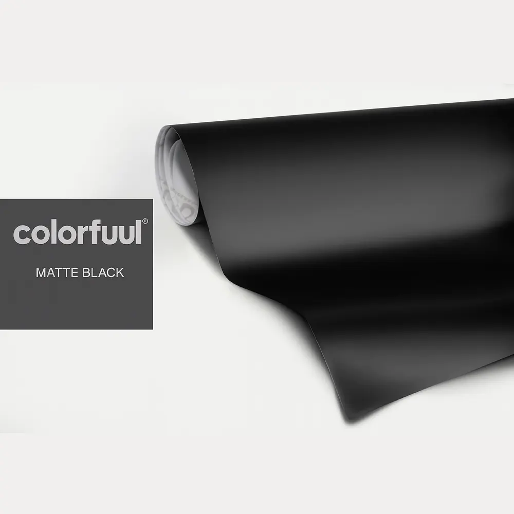 ال ColorFuul Black Matte Vinyl Wrap with Air-Release delivers a sleek, stealthy look that never goes out of style. Its deep matte black finish provides a smooth, non-reflective surface that instantly transforms the appearance of any vehicle, موتوسيكل, or custom project.
